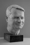Betonguss, etwas überlebensgroß, gewachst auf gebeizten Holzsockel.